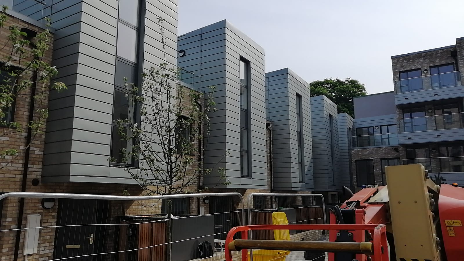 This project comprised of zinc standing seam roofing and elZinc shingle cladding. Both the shape and details of the units are unique and resulted in a striking and elegant finish.
